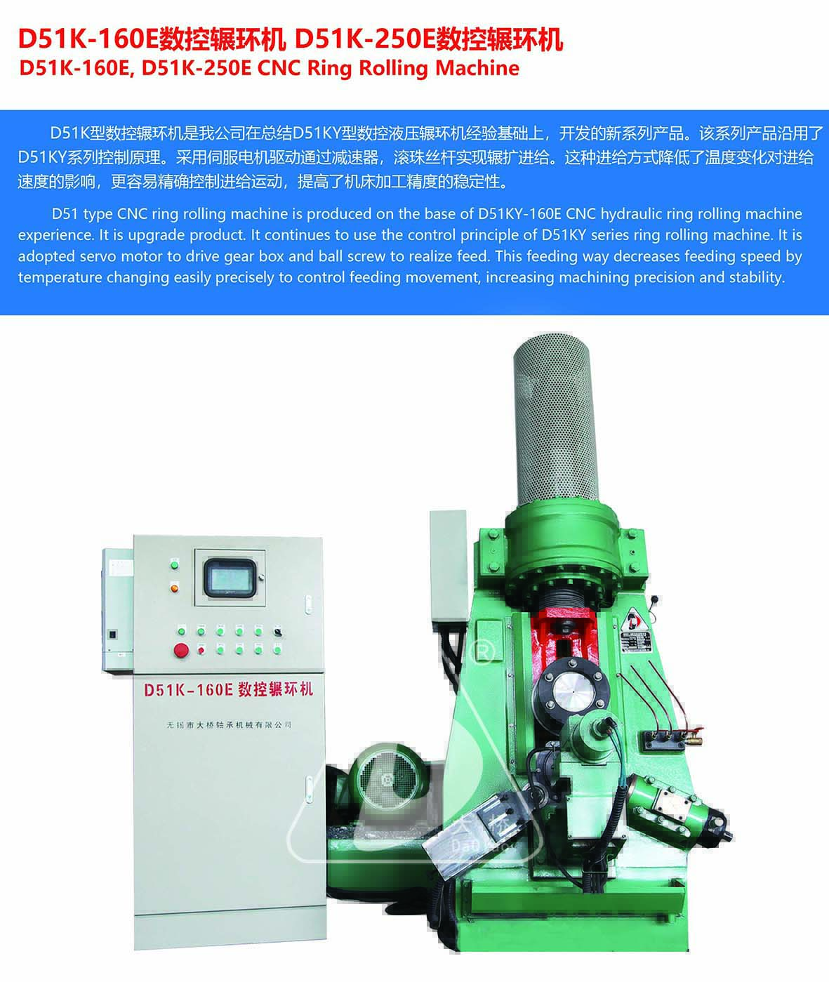 D51K型數(shù)控輾環(huán)機(jī)是我公司在總結(jié)D51KY型數(shù)控液壓輾環(huán)機(jī)經(jīng)驗(yàn)基礎(chǔ)上,開發(fā)的系列產(chǎn)品。該系列產(chǎn)品沿用了 D51KY系列控制原理。采用伺服電機(jī)驅(qū)動通過減速器,滾珠絲桿實(shí)現(xiàn)輾擴(kuò)進(jìn)給。這種進(jìn)給方式降低了溫度變化對進(jìn)給 速度的影響,更容易精確控制進(jìn)給運(yùn)動,提高了機(jī)床加工精度的穩(wěn)定性。