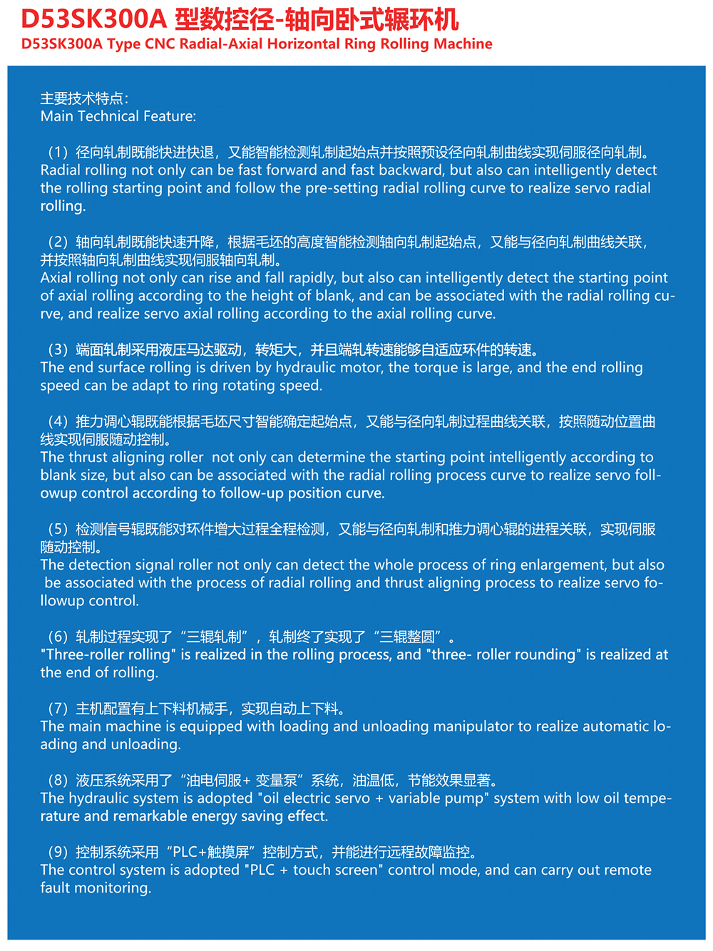 (8)液壓系統采用了“油電伺服+ 變量泵”系統,油溫低,節能效果顯著。